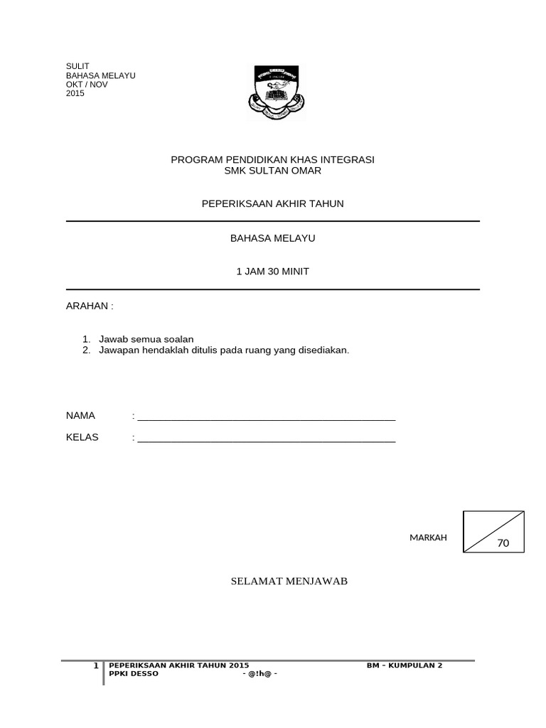Soalan Peperiksaan Akhir Tahun Bahasa Melayu Tahun 1 2019 Asundlogokc